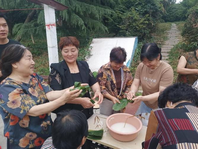 活動(dòng)現(xiàn)場,三方黨員把事先準(zhǔn)備好的糯米、粽葉等材料整齊擺放在桌子上,黨員和群眾們圍在一起開始包粽子。經(jīng)過大家的辛勤勞作,包出了一個(gè)個(gè)體形豐滿、包扎整齊的粽子?,F(xiàn)場氣氛歡樂祥和,其樂融融。